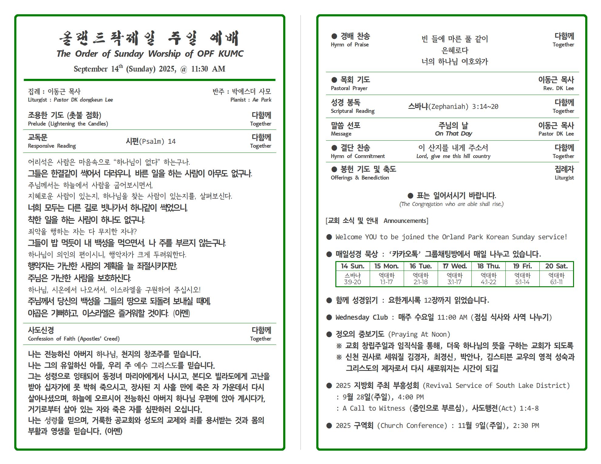 Sunday Bulletin