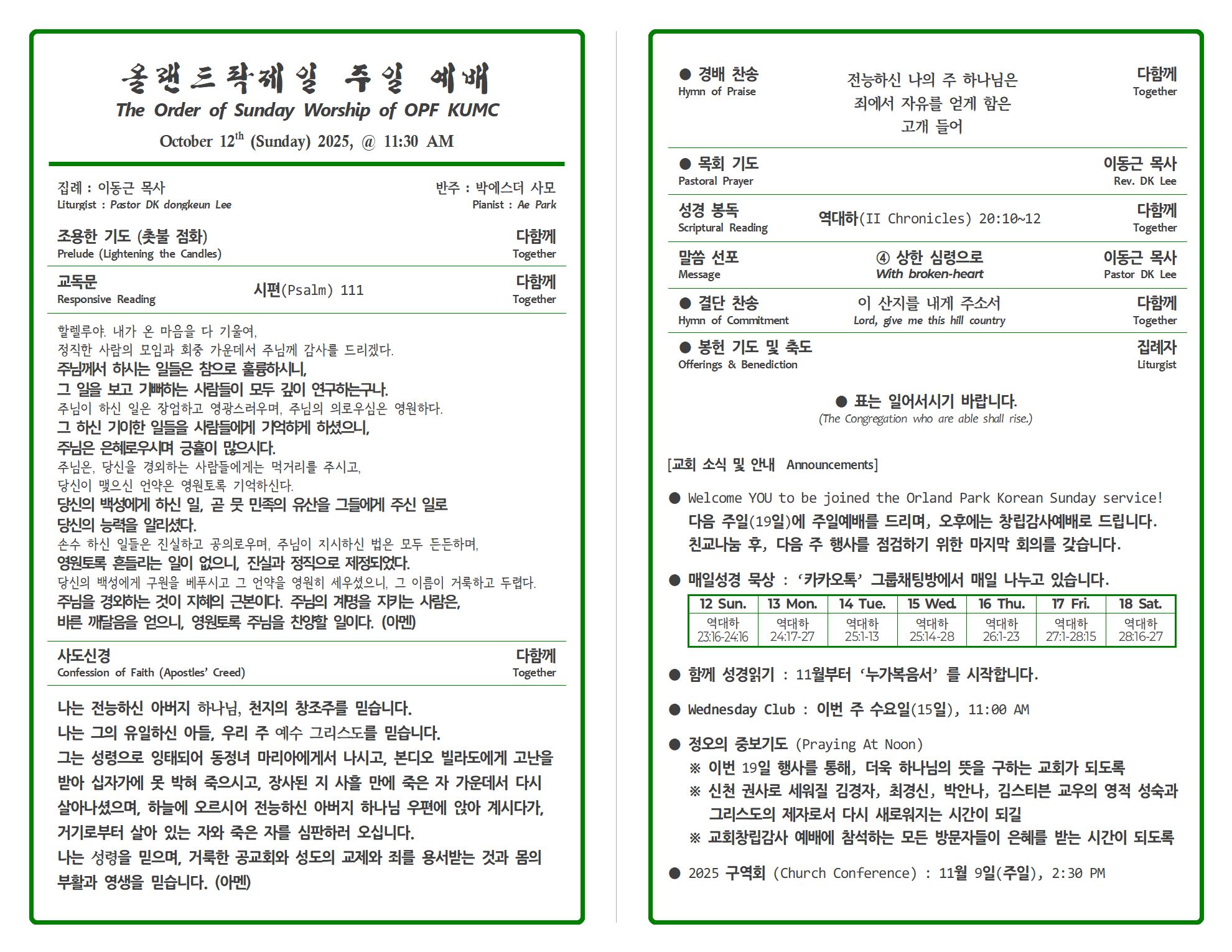 Sunday Bulletin